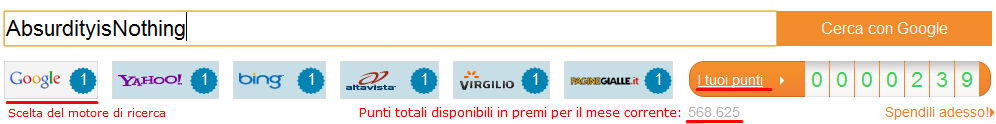 1. Ogni ricerca vi garatisce 1 punto, anche se in alcune giornate dicono che i punti all’improvviso possono aumentare per un determinato motore di ricerca. Attenzione, è possibile effettuare un massimo di 300 ricerche al giorno.